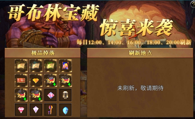 2、哥布林种类每次随机刷新,不同哥布林掉落不同的宝箱奖励。