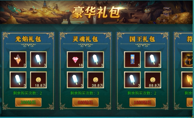 豪华礼包:豪华限购礼包,只限购一次!