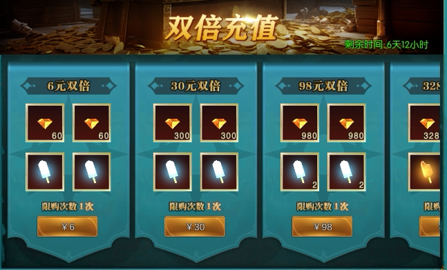 双倍充值:月末活动,充值全部双倍!