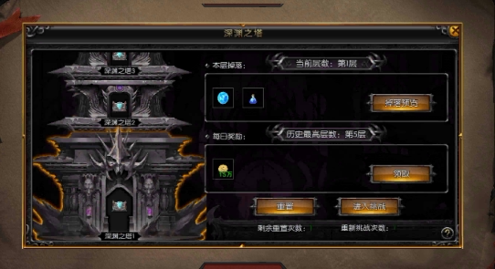 可以重置深渊之塔从第1层开始再次开启挑战。首通奖励仅可领取1次
